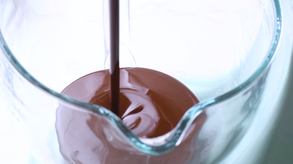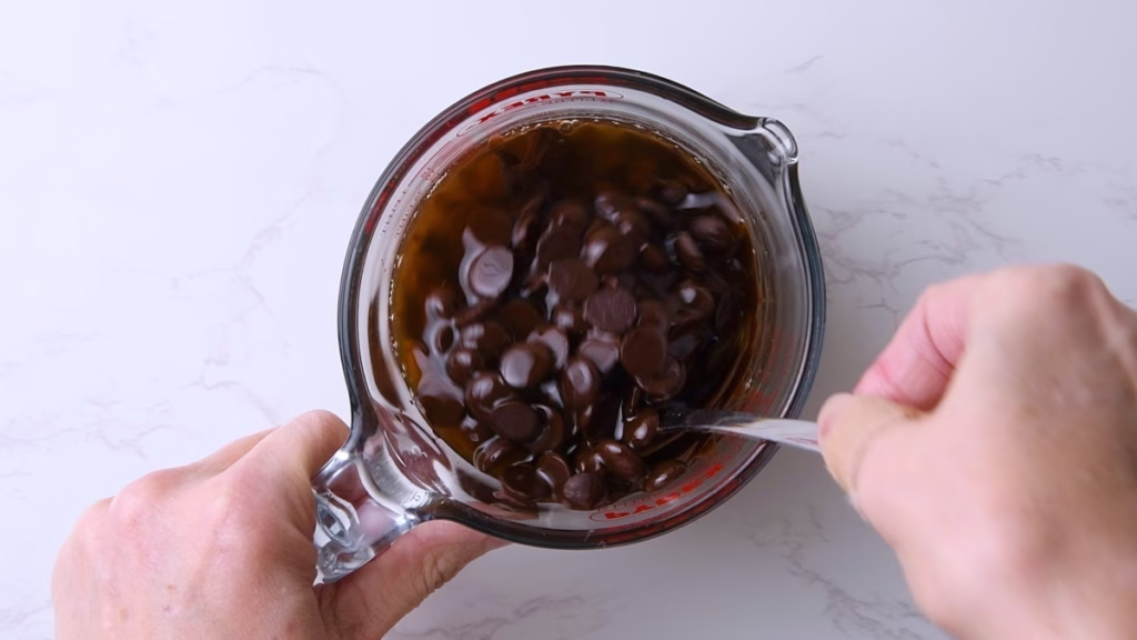 - Add the dark chocolate, let it sit for 2 minutes, then stir until it’s all melted and creamy.