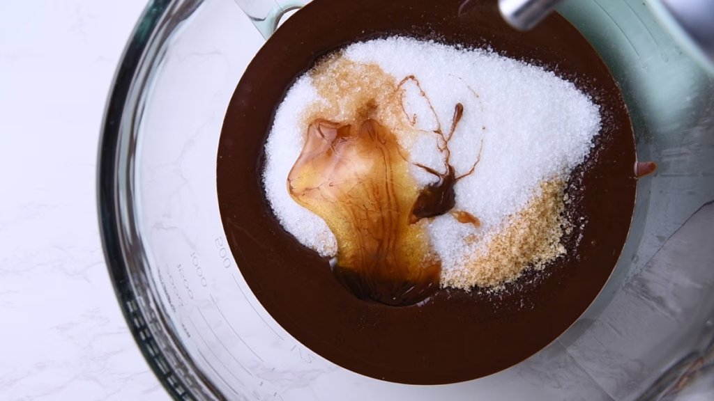 - Sugar – More dark brown for chewiness and molasses flavor, plus a little granulated for volume.
