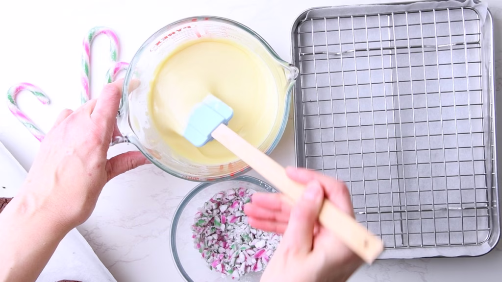 - Sprinkle with the crushed candy canes and allow to set for a few hours.