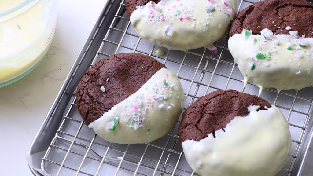 I layer the flavor with a chocolate-mint dough, a soft after-dinner mint center, and a crunchy white chocolate peppermint bark coating for that all-important holiday sparkle. This creates an incredible, deep, satisfying mint experience.