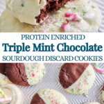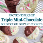 Tired of choosing between a fudgy brownie, a chewy cookie, and an indulgent after-dinner mint? With this recipe, you don’t have to! I’ve taken the classic mint chocolate experience and leveled it up: This cookie has a dense, decadent chocolate base, a soft mint-filled center, and a crackly peppermint bark coating. Plus, by adding sourdough discard and a secret protein boost, I’ve created a chewy, complex, and satisfying treat you can feel great about enjoying this holiday season.