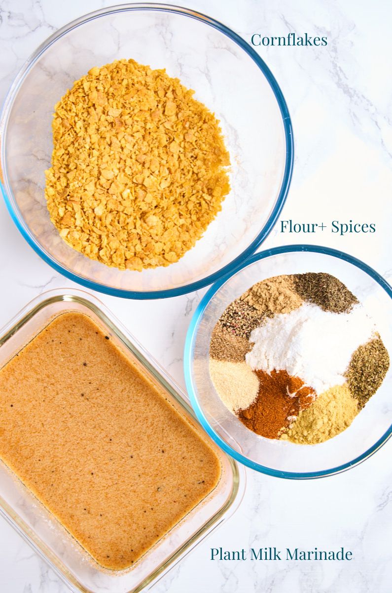 - Combine the plant “buttermilk” with salt, white pepper, smoked paprika, and garlic powder. Marinate tofu in this mixture for at least 1 hour in the fridge. Overnight is better.
