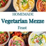 If you have been following along with my last eight recipes, you already have a good idea of how this Vegetarian Mezze Feast will look like. We are combining all of those delicious dips and snacks into one stunning spread that is worthy of any holiday or festivity. The fact that it’s vegetarian is an added bonus, and I’m pretty sure no carnivore will even waste a thought on the meat, once they see all the stunning variety on offer.