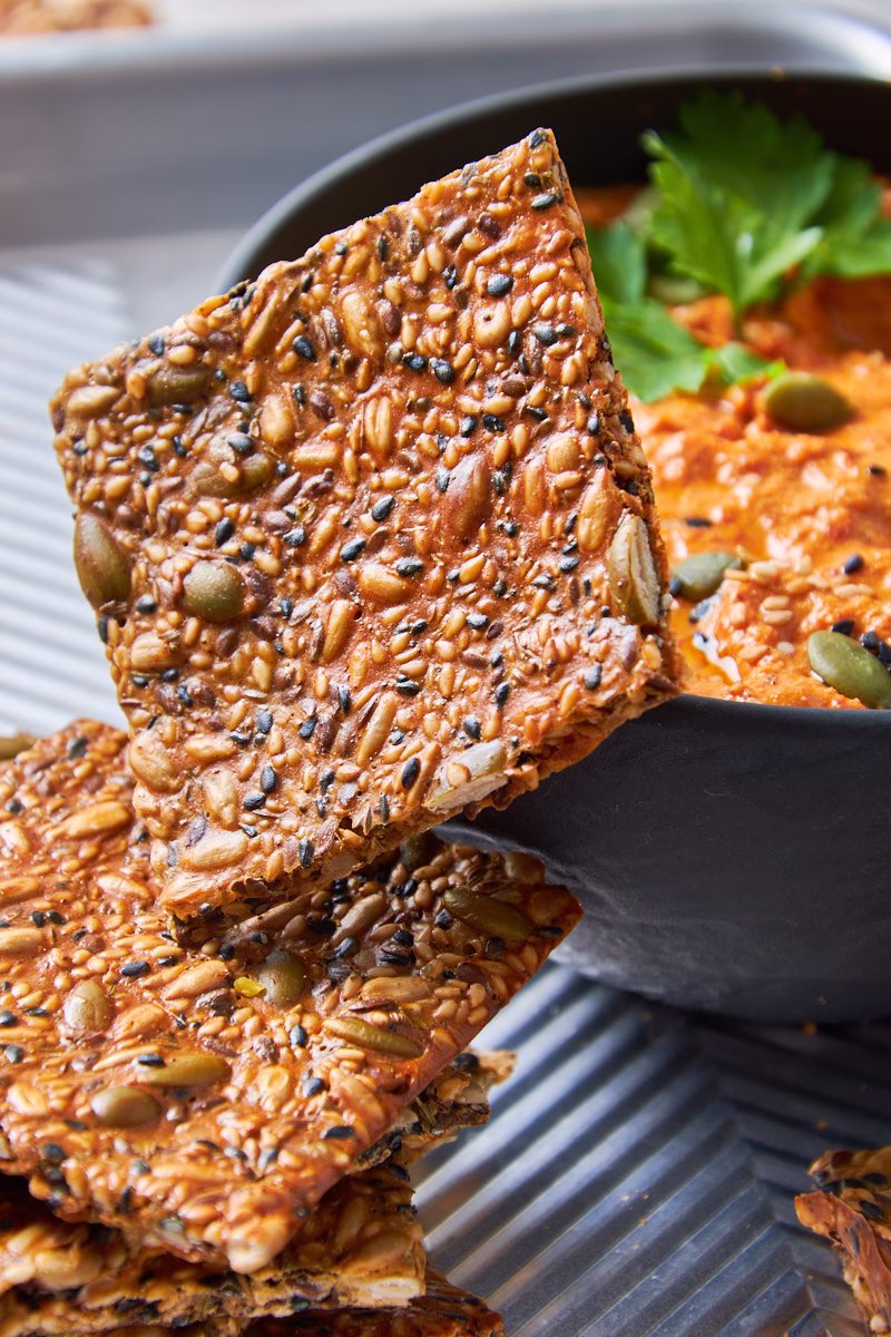 These seeded sourdough discard crackers are the perfect vehicle for this dip.
