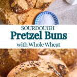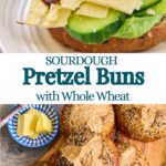 These wholewheat sourdough pretzel buns look so hearty and golden—perfect for sandwiches or burgers!